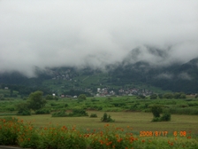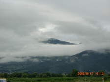 30分ほど走ると、ようやく晴れ間が出てきて、雲の切れ間から高社山の山頂がちらっと見えました。