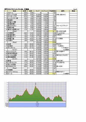 菅平スカイライントレイルランレース、40Kコースの皮算用を作ってみました。細かい区間の距離は正確じゃないところもありますが、ま、大目に見てやってください。 実際の試走の経過時間から逆算した部分もあります。