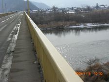 橋の上には、辛うじて歩道が…。(岩野橋程度です)