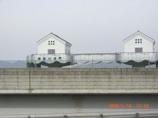 前方に、消防学校が近づいて参りました。間もなく、堤防道路とお別れして、ミステリーゾーンに突入します。