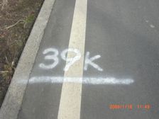 33k地点通過です。今回の距離マーカーですが、1K区間の中間点(500m地点)に、ただの白線が引いてあり、結構助かりました。
