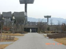 スタジアム正面の聖火台っす~。 そういえば、長野オリンピックの閉会式観に来たっけな。