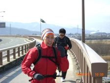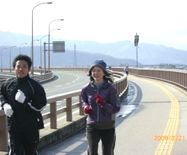 さて、ぎっぺさんの先導でMウェーブ1周してから五輪大橋へ向かいます。いきなり、凍結路のスリップ事故を目撃しましたが、とくに感想はありません。