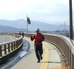 その後、松代大橋を渡って、南長野スタジアムへ到着。23.7k。2時間24分(6’05)