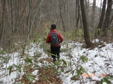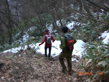 葛山からの下りでは、残雪が多く、足元に気をつけながら、でも、それなりのペースで駆け下ります。
