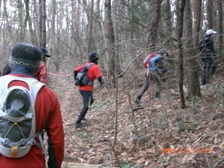 途中から、番所跡までトレイルへ再突入。最初は、激登り坂です。ここまでのロードの急坂で、かなり足が終わっちゃった人もいたようです。自分は弐号と今生の別れをしていたので、最後尾からゆっくりくっついていきました。