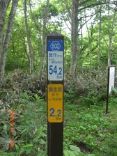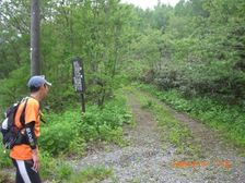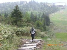 登山道入口に着いた。もしかすると、ゲレンデの途中から、こっちの登山道を下ることになるのかも。