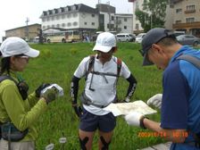 これから、志賀前半部分へ散歩に行くとの事で、駐車場の地面に地図を広げ、自分のカメラ画像をお見せしながら、「ここがこうで、あ~で」と状況説明などを。