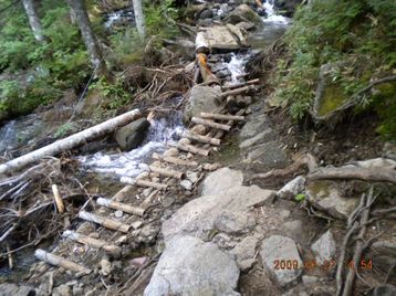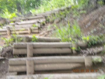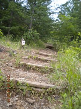 が、鉄の階段を登り、さらに丸太の階段がしばらく続きます。