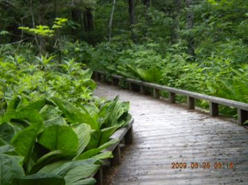 牧場を抜け、トレイルを過ぎると、木道を走ります。