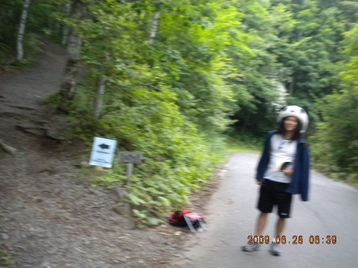 やがて、勾配がフラットになり、少し楽になると、乗鞍岳が見えるジープ道に出ます。そして、その先には、再び…