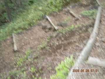 牛溜池から乗鞍岳を眺め、Qの木に挨拶し、ちょっとだけトレイルを下って登ると、「口笛の径」です。基本、下りのトレイルが続きます。岩や階段もありますが、それほどテクニカルでもないので、勢いに任せてガンガン飛ばせます。