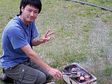 炭火で岩魚の塩焼きです♪ 炎天下、チャーシューを焼くスタッフのお兄ちゃん、お疲れ様です。