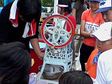 エイドで、片っ端から試食開始です。8の字コースの真ん中がエイドなので、50k走ると、10回お世話になります。だから、コップは洗って再利用です。