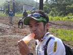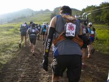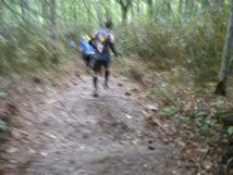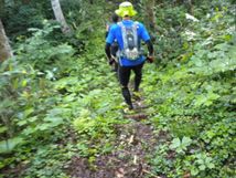 下り階段や木橋が、泥で滑ります。それぞれの橋で、目の前で転倒する選手を目撃。ついでに、最後の橋では、自分も転倒し、危うく沢に落ちるとこでした…。