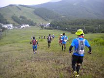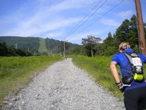 国道まで下り、高架橋を渡ってからは、ほぼ歩き。一ノ瀬ペンション通りの舗装路を歩いてたら、女子4番手、売出中の今泉選手御一行様に抜かれました。(あとで聞いたら、奥志賀ホテルから、ここに至るまでの間に、Acoちゃんにも逆転されてたらしい…。)