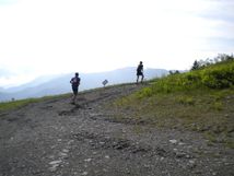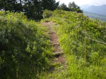 山頂までは、木道でした。ヘロヘロ歩いてたら、途中で、女子3番手に抜き返された…。