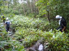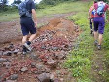 南登山道を下ります。私、ザックにコールドスプレー、テーピング、マキロン等を常備してましたので、念のために最後尾からゆっくり降りていきました。