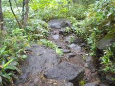 下りのトレイルが、泥と岩、その上に笹の葉サラサラで、かなり滑って危険だった。