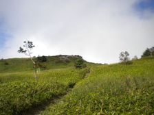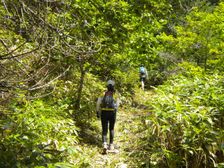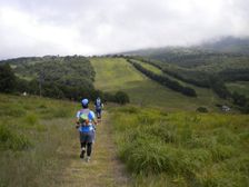牧場内の最後の柵を越えたあと、牧場を突っ切って、小根子登山道へ入るのだが、その分岐を見過ごしてかなり下りすぎた。仕方なく、かなり先から登山道を登り返した。数キロのロス。ここも、携帯で連絡しておいた。そのあと、実行委員会の方が分岐に立ってくれたらしい。