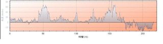 36k地点までは緩い下りが続くので、5分ペースをキープ。ところが、その後、雲行きが怪しくなってきた。どうやら、現在の脚のポテンシャルを使い果たしたらしい。